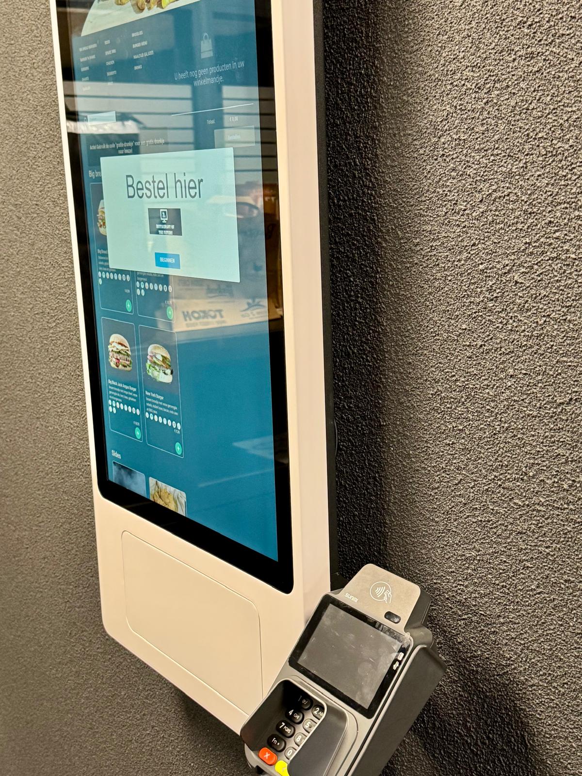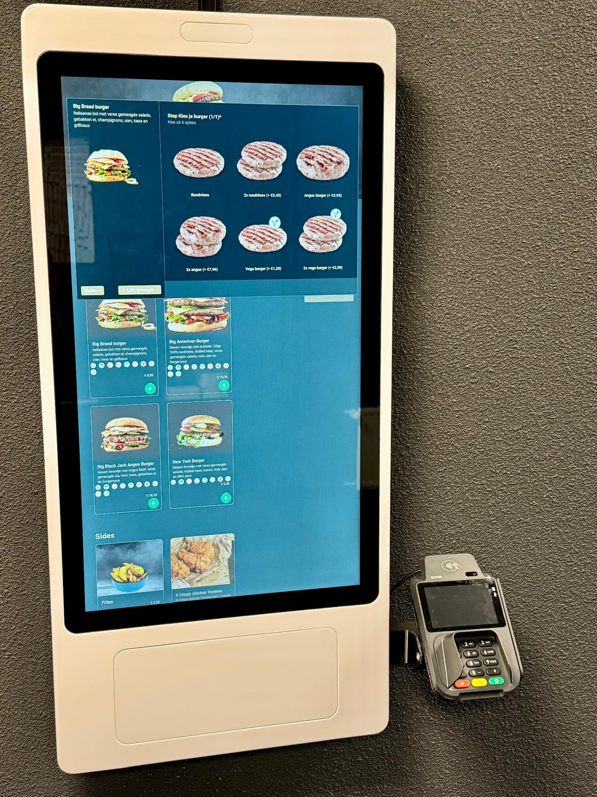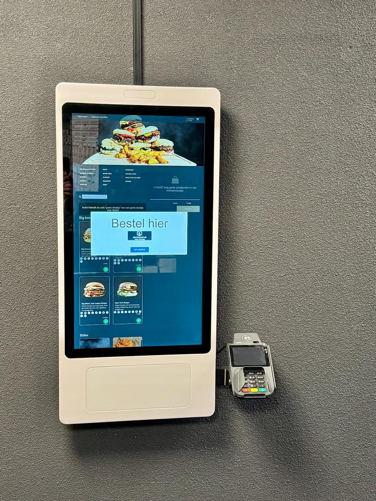 Deze bestelzuil werkt in combinatie met Cashdesk delivery and take away software.